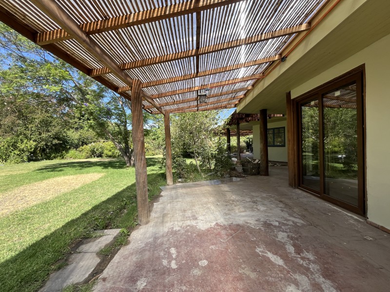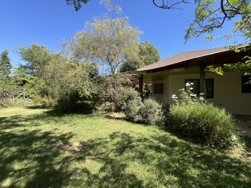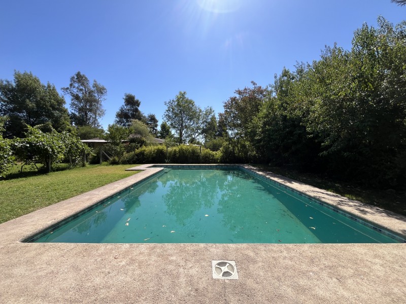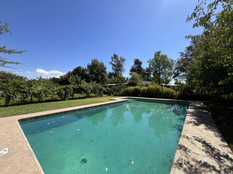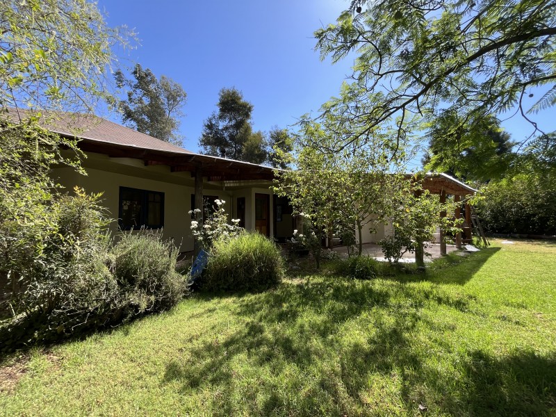 Jardín formado y consolidado con árboles añosos, amplia terraza techada, piscina con pérgola y sistema de filtrado, sector independiente con horno de barro y lavaplatos, zona de fogón y huerto, estacionamiento cubierto para 3 autos, bodega, leñera, lavadero exterior, ablandador de agua.