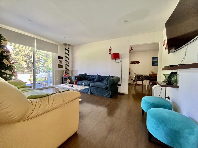 Hall de acceso, living con salida a terraza y comedor separados, estufa a combustión lenta a leña, cocina amoblada y equipada.