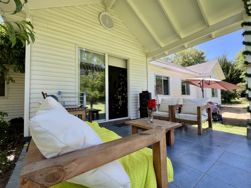Acogedora casa de 140 mts2 en parcela de 2.000 mts2 aprox, en condominio consolidado con accesos controlados ubicada en Rangue zona de Aculeo. Lugar tranquilo, campestre y seguro de Paine.