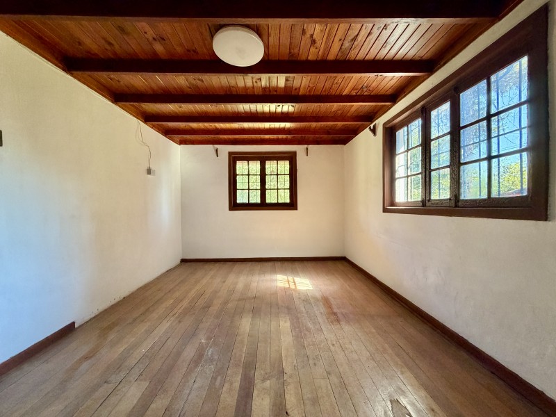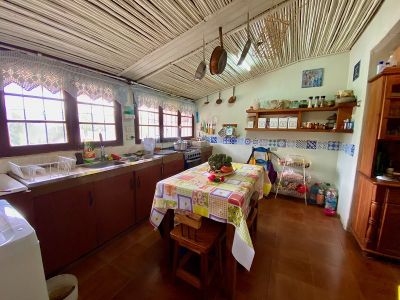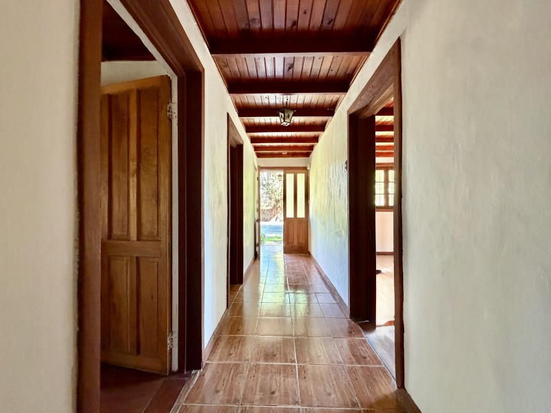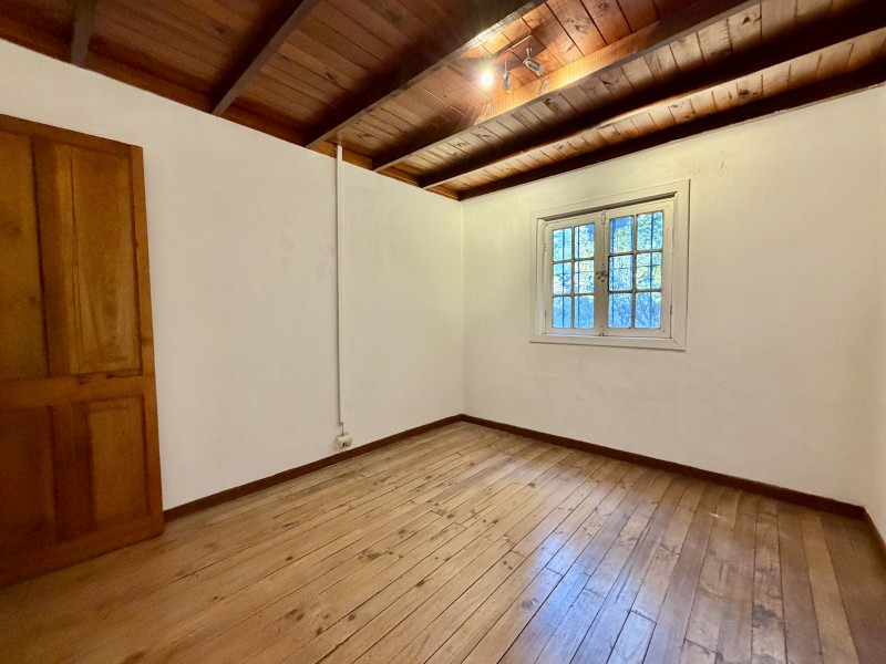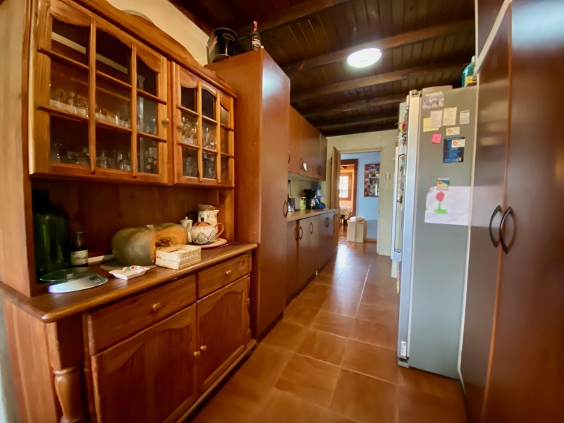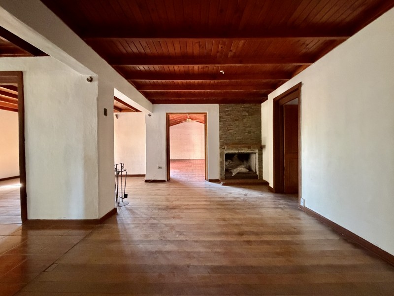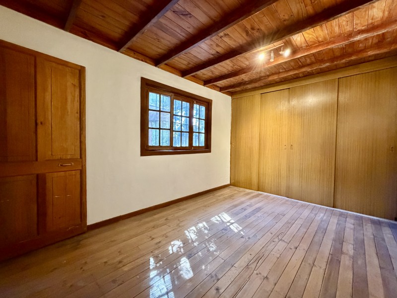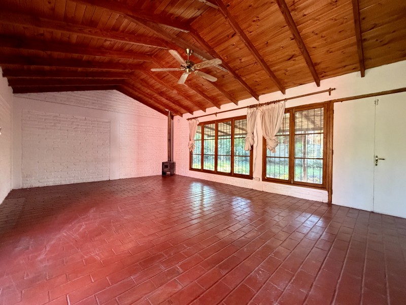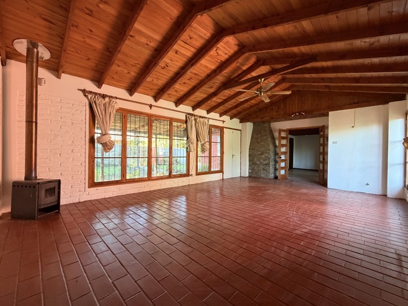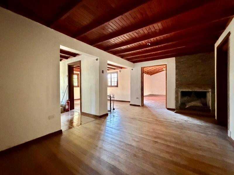 Hall de acceso, comedor independiente con pisos de madera y vigas a la vista, estufa de doble combustión a leña, 1 dormitorio puede ser estar o escritorio, amplio living con vigas a la vista, estufa de doble combustión a leña, salida a terraza techada. Cómoda sala de estar con chimenea, 3 dormitorios, uno en suite con salida al exterior, un baño completo para otros dos dormitorios. Amplia cocina con comedor de diario y salida al exterior.