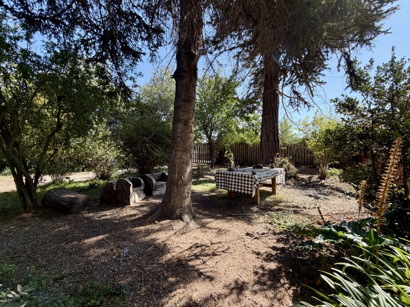 Jardín formado y consolidado, zona de frutales y huerto, garage para un auto, despensa subterránea de estructura sólida, lavadero exterior, portón de acceso automático.