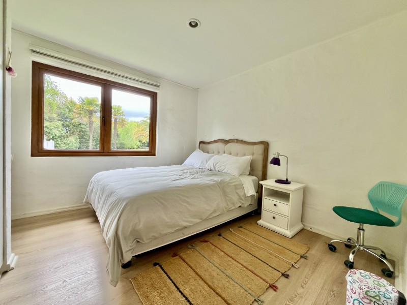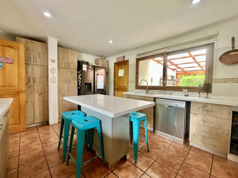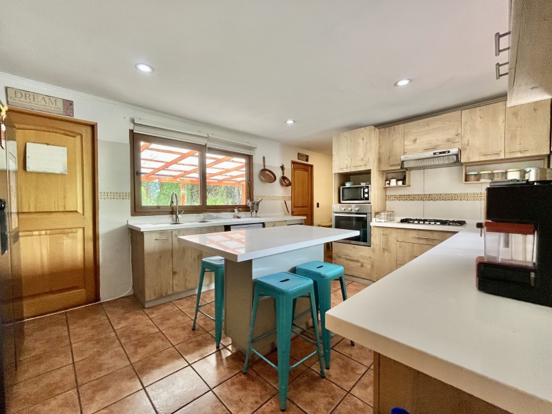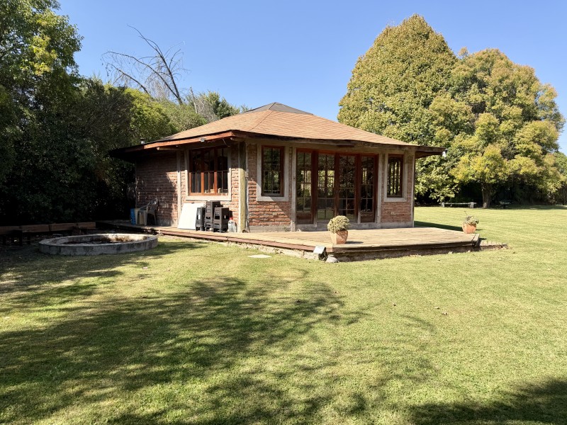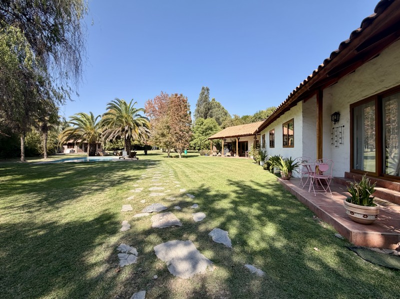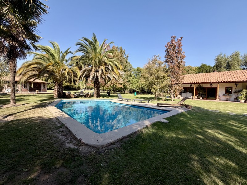 Jardín formado y consolidado, piscina, amplio quincho cerrado, equipado con parrilla en obra, horno de barro, mesones, zona de living y comedor.