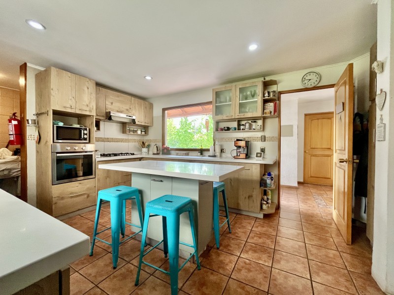 Linda y funcional casa remodelada de 220m2 en parcela de 5.000m2 en condominio consolidado con seguridad 24/7, caminos pavimentados, urbanización subterránea y áreas verdes. Excelente ubicación y conectividad, cercana a colegios de la zona, strip center con farmacia y supermercado, mall plaza sur, estación de metrotren y a 6 minutos de Ruta 5.