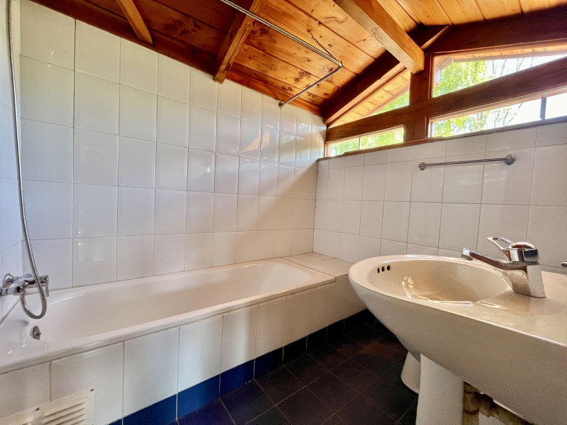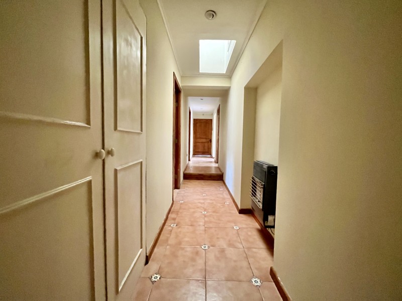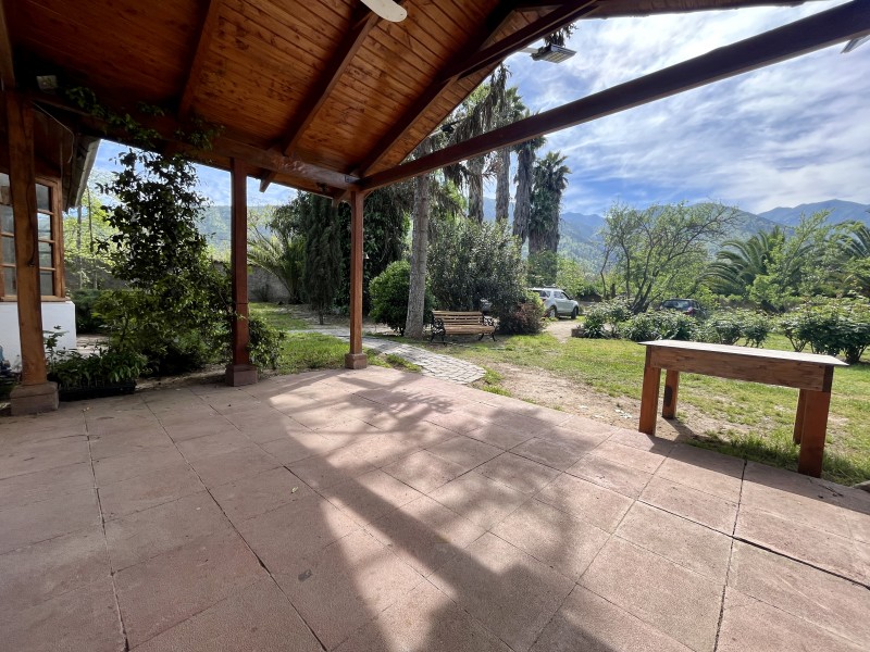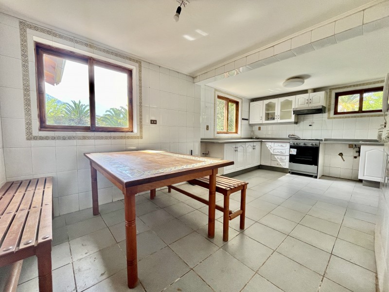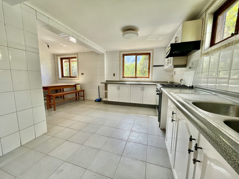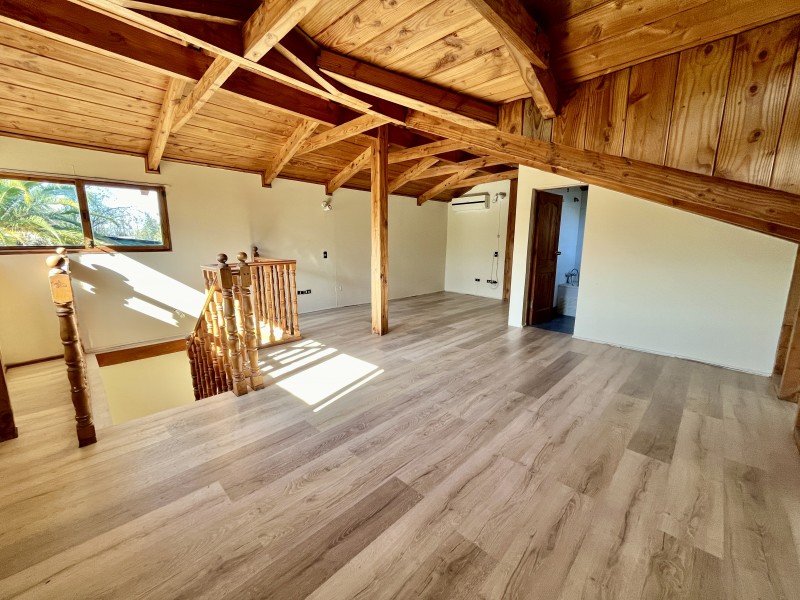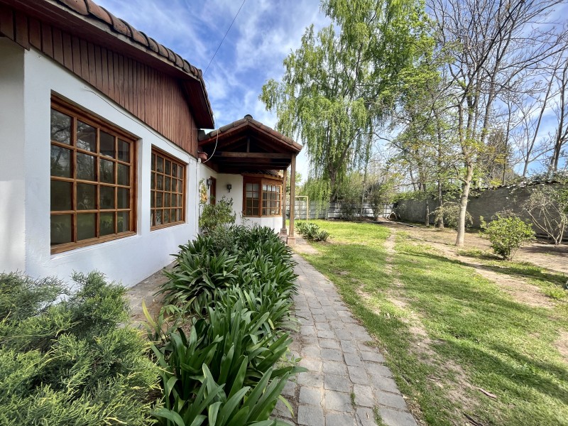 Hall de acceso, amplio living con vista al jardín y estufa a doble combustión a leña, comedor independiente con salida a terraza techada, cocina completamente amoblada, comedor de diario, lavadero interior, dormitorio y baño de servicio.