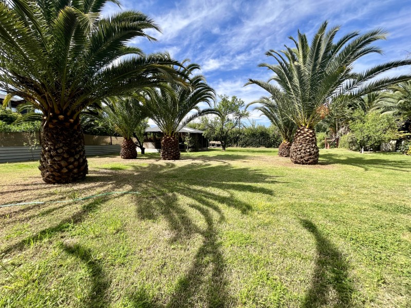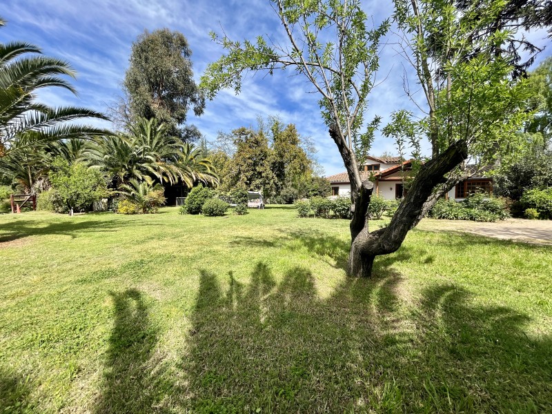 Jardín completamente formado y consolidado, piscina con reja, zona de quincho, pajarera o gallinero, portón de acceso automático.