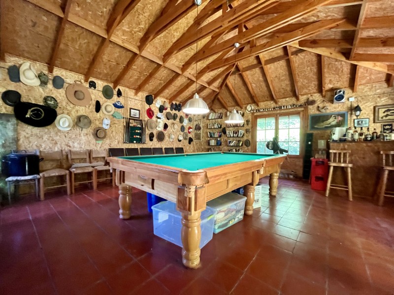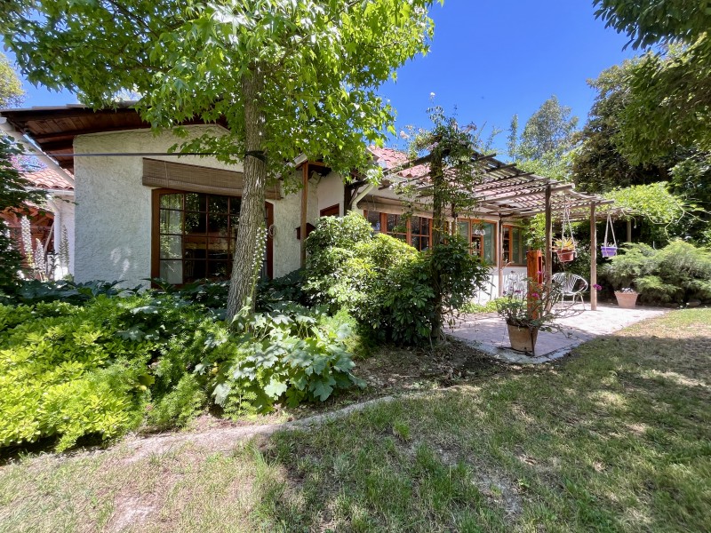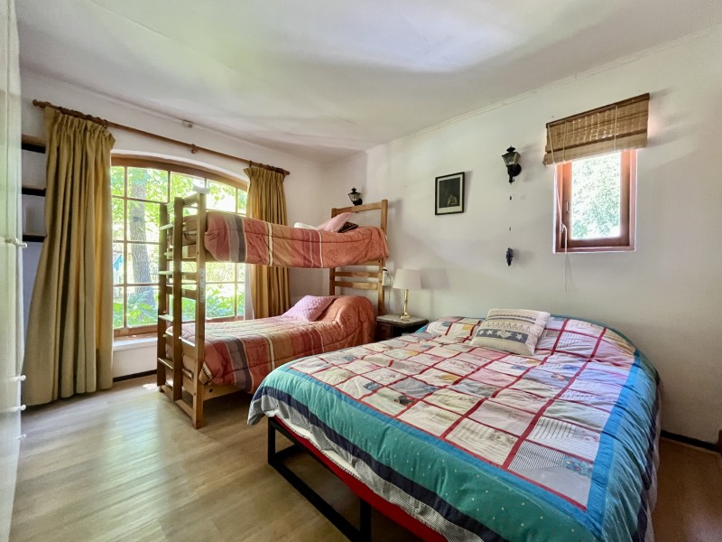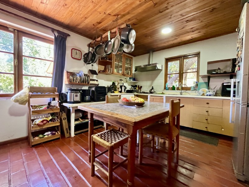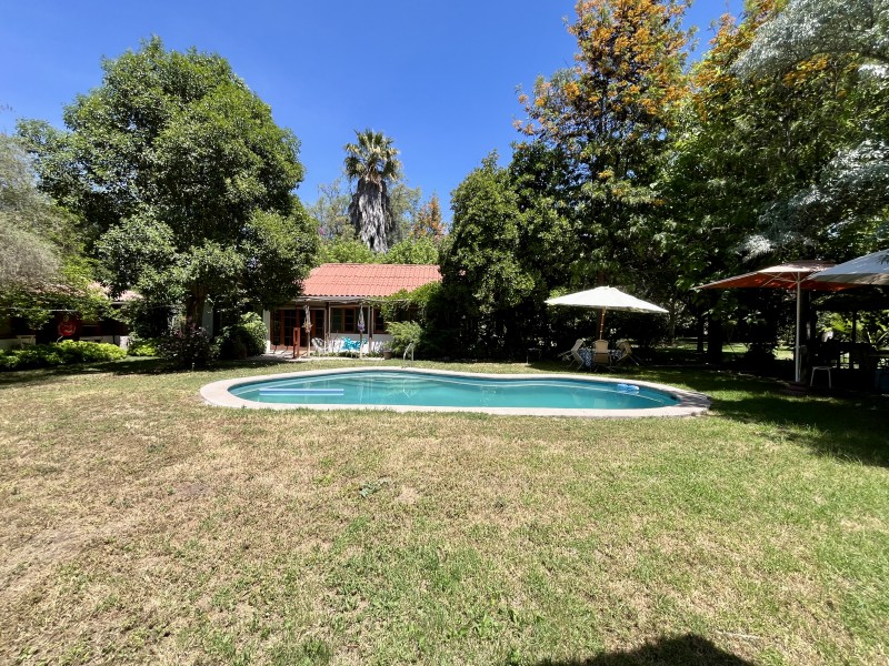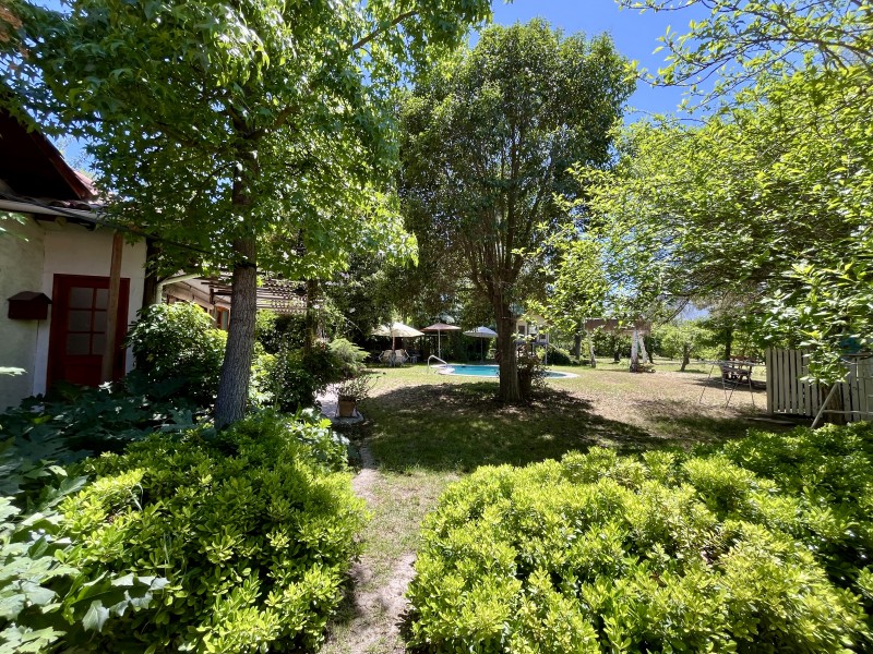 Jardín formado y consolidado, 2 terrazas, amplio quincho con parrilla y horno de barro, piscina, sala de juegos con mesa de pool y bar, completamente independiente, bodega de jardinería, bodega de herramientas, zona de frutales, casa de muñecas.