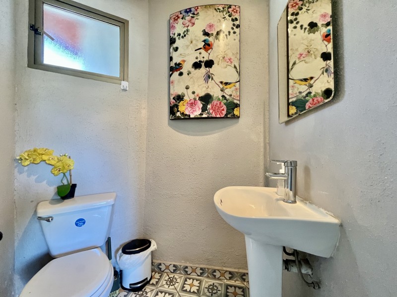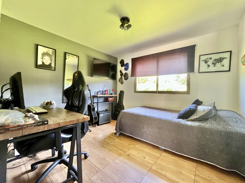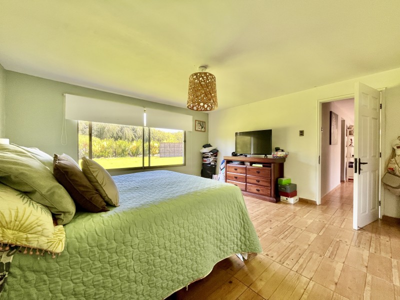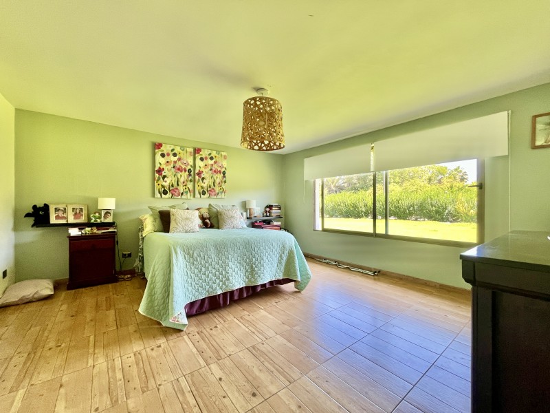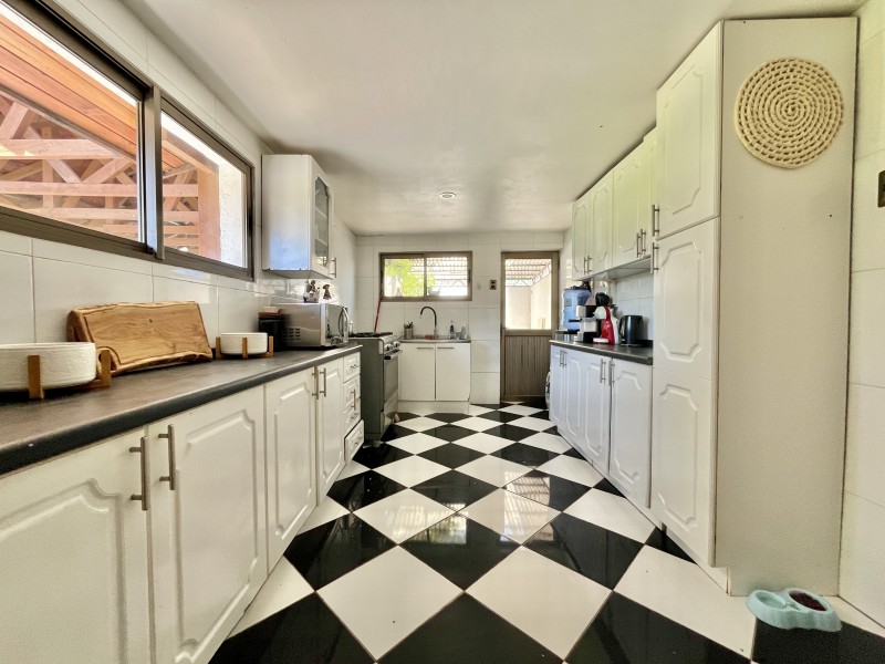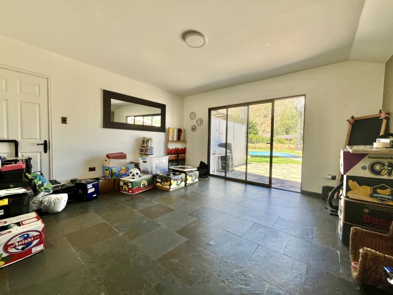 Jardin consolidado, quincho techado con parrilla y 2 hornos de barro, bodega o taller, piscina, canil, dormitorio de servicio con baño, baño completo adicional para jardinero o piscina, estacionamiento techado para 2 autos.