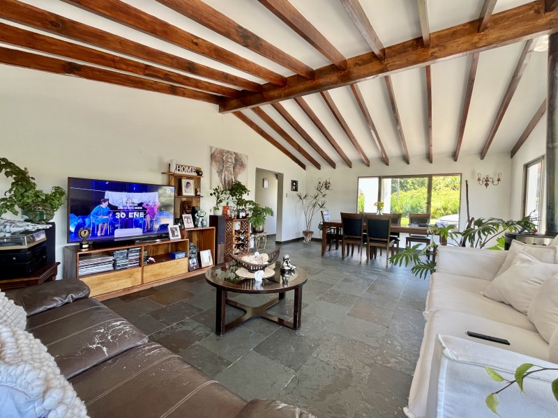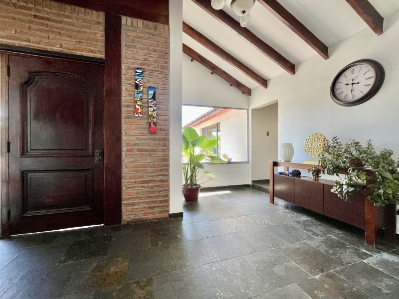 Hall de acceso con techos de doble altura, baño de visitas, cómodo living con salida al jardín, comedor independiente con salida a terraza, cocina amoblada con lavadero, en sector dormitorios, amplia sala de estar con salida a terraza, 3 dormitorios, el principal en suite con walk in closet, un baño completo compartido para los otros dormitorios.