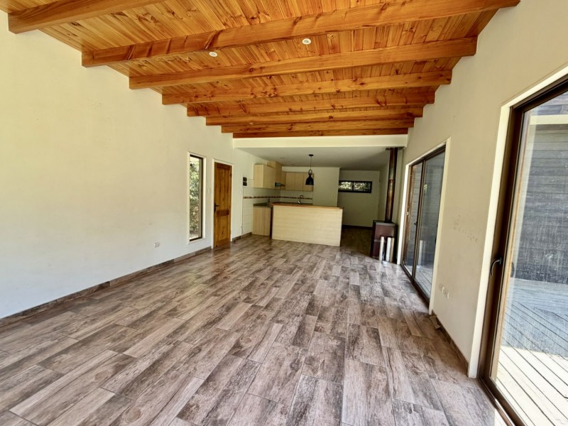 Pisos de cerámica, ventanas termopanel, una estufa de doble combustión a leña.