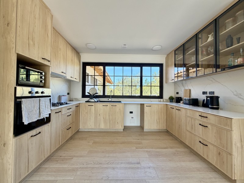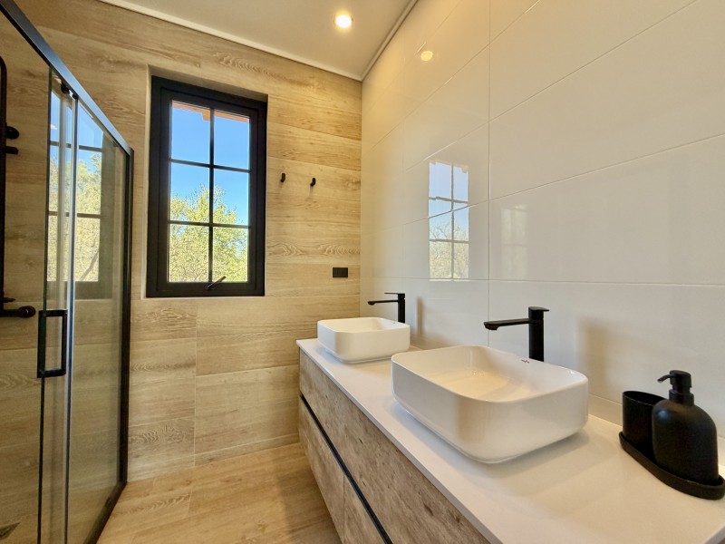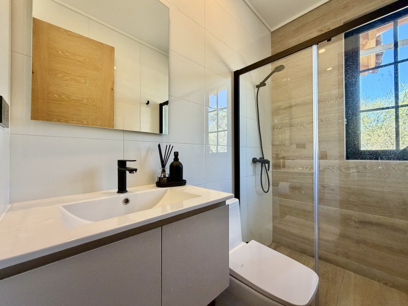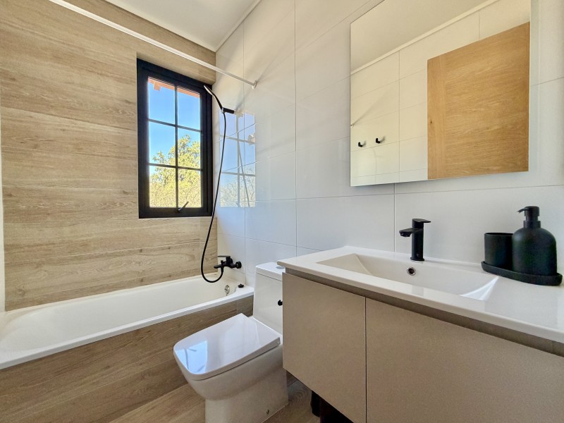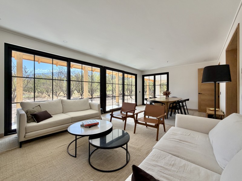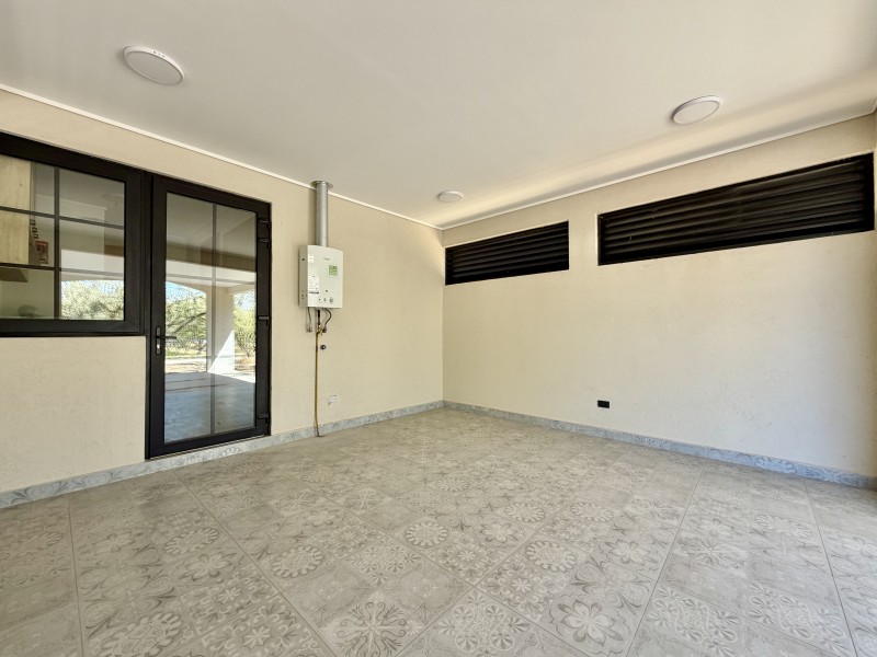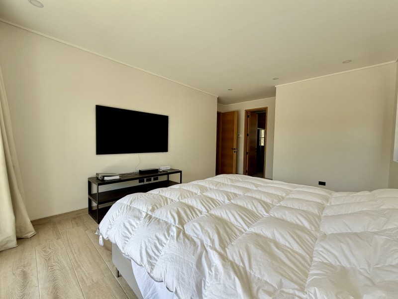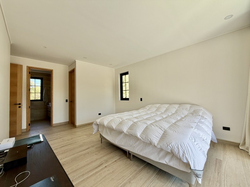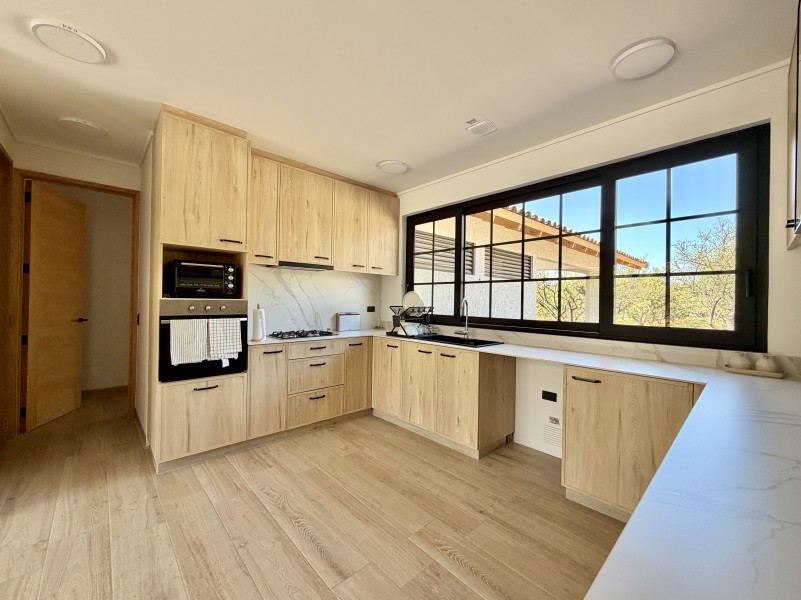 Ventanas termopanel con marcos de PVC, pisos de porcelanato, calefacción central por losa radiante con caldera a gas, 2 calefont de agua caliente, estanque de gas soterrado de 1.000lts.