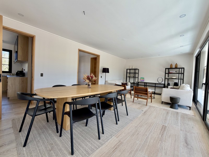 Hall de acceso, baño de visitas, amplio living comedor con salida a terraza tecgada, cocina amoblada y equipada, zona de comedor de diario y salida a terraza, despensa independiente, lavadero interior amoblado, dormitorio y baño de servicio, patio de servicio techado.